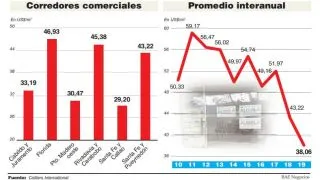 Un informe de la consultora Colliers indica que en el primer semestre del año el precio promedio se situó en los US$38,06 por metros cuadrado, es decir, US$5,16 por debajo de lo registrado a fin del año pasado, un descenso del 11,93% durante el semestre y 14,15% con respecto al mismo período de 2018.