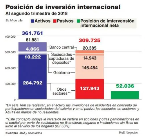 Los resultados de la PII, al segundo trimestre del año 2018, arrojan un saldo favorable de poco más de U$S 52.000 millones, con un activo cercano a los U$S 362.000 millones, de los cuales casi el 79% (U$S 284.792 millones) pertenecen al sector institucional denominado "otros sectores" (que corresponde al sector privado no financiero).