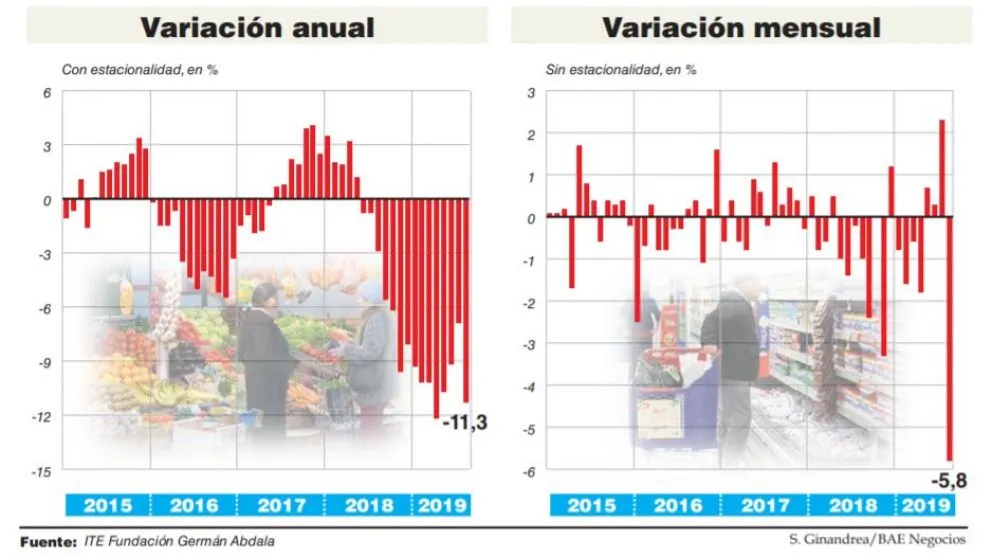 Otro récord: el desplome del consumo en agosto fue de 5,8%, el peor en 20 años