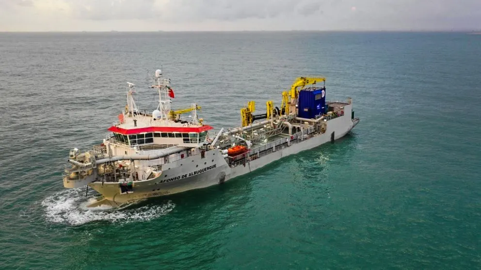 En este marco, y para garantizar el éxito del trabajo, la compañía destinó su buque de succión Alfonso de Albuquerque, una embarcación ultramoderna y de alta tecnología, que se destaca por ser la primera draga del mundo en cumplir con las estrictas normas internacionales en materia medioambiental, las Euro V. Además, posee un sistema de filtrado de gases vanguardista, que logra una reducción certificada del 99% de las partículas residuales de la combustión.