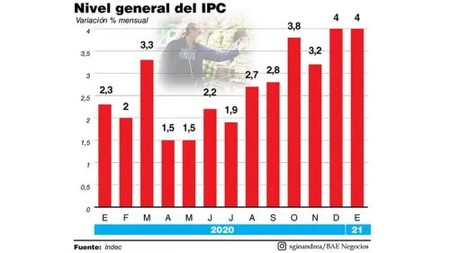 La desaceleración inflacionaria del 2020, con un dato anual de 36,1%, escondía una dinámica interna problemática: si bien el número era el más bajo desde 2017, hacia dentro se observaba una fuerte aceleración en los últimos meses. Esa complicación ya dejó su primera huella en el dato de precios del primer mes el 2021, que marcó una suba de 4%. Se trató del enero con mayor inflación del que hay registros, ya que en 2016 había apagón estadístico.