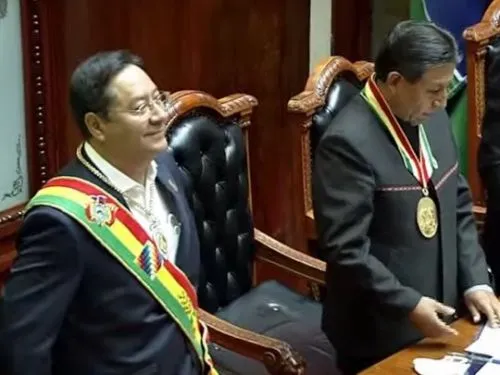 En una ceremonia en el Parlamento de la Plaza Murillo, Luis Arce tomó posesión de la banda y la medalla que lo ungieron presidente del Estado Plurinacional de Bolivia. Lo mismo hizo su vicepresidente, David Choquehuanca