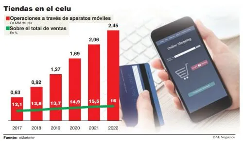 Para 2022 se espera que las ventas locales a través de dispositivos móviles alcancen los u$s2.400 millones y la participación de este tipo de operaciones en el total del comercio electrónico será del 16 por ciento.