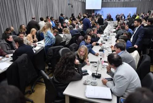 El plenario de Legislación General, Presupuesto y Hacienda y Asuntos Constitucionales comenzó cerca de las 15.30. Antes, el bloque presidido por Rodrigo De Loredo se había reunido a las 9 de la mañana para terminar de definir posiciones, para después al mediodía encontrarse con los gobernadores "dialoguistas" -que recibieron al bloque de HCF, pero también con la participación de miembros del radicalismo- y, finalmente, terminaron el poroteo con el oficialismo para las 13.