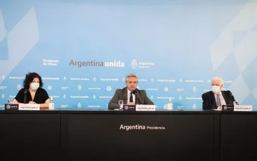 A diferencia de la última ocasión, cuando habló en vivo desde Misiones, esta vez el Presidente realizó su anuncio de forma grabada y desde la Quinta de Olivos. Estuvo acompañado por el ministro de Salud, Ginés González García, y por la secretaria de Acceso a la Salud, Carla Vizzotti.