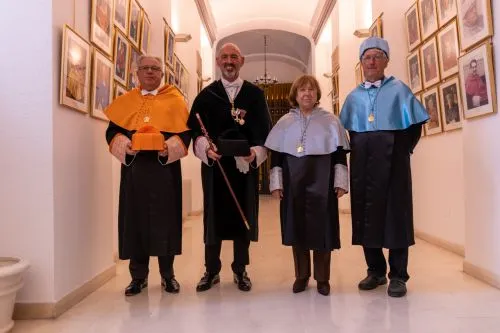 La ceremonia se llevó a cabo en el imponente paraninfo de la universidad, construido en 1852 y que está situado junto a la Biblioteca Histórica “Marqués de Valdecilla”, donde se encontraban la iglesia y el noviciado de la Compañía de Jesús, a cinco minutos a pie de la Gran Vía y a 12 de la Puerta del Sol.