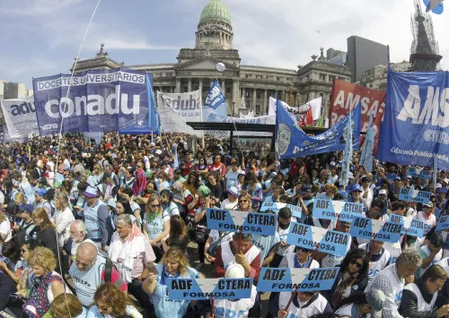 Los gremios coincidieron en una masiva marcha al Congreso con la condena al secuestro y tortura de una maestra en Moreno, entre los cánticos que entonaban las columnas resaltó uno: "No tenemos miedo", como también el recuerdo para los dos docentes que fallecieron tras una explosión en esa misma zona del Gran Buenos Aires.