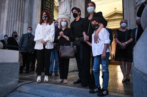 La vicepresidenta y titular del Senado, Cristina Kirchner, recibió a la familia del ex presidente y permaneció en el Salón Azul, que se estableció como capilla ardiente
