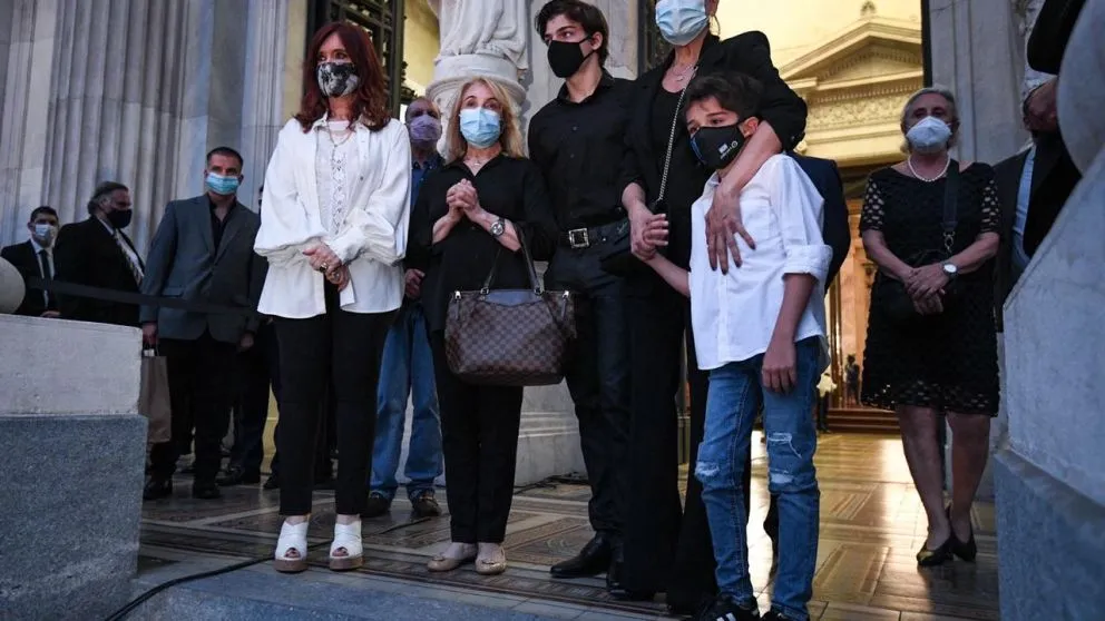 Cerca de las 21, se hizo presente el presidente Alberto Fernández acompañado de la primera dama Fabiola Yañez, y se acercaron al féretro para saludar a la familia congregada alrededor del ataúd.