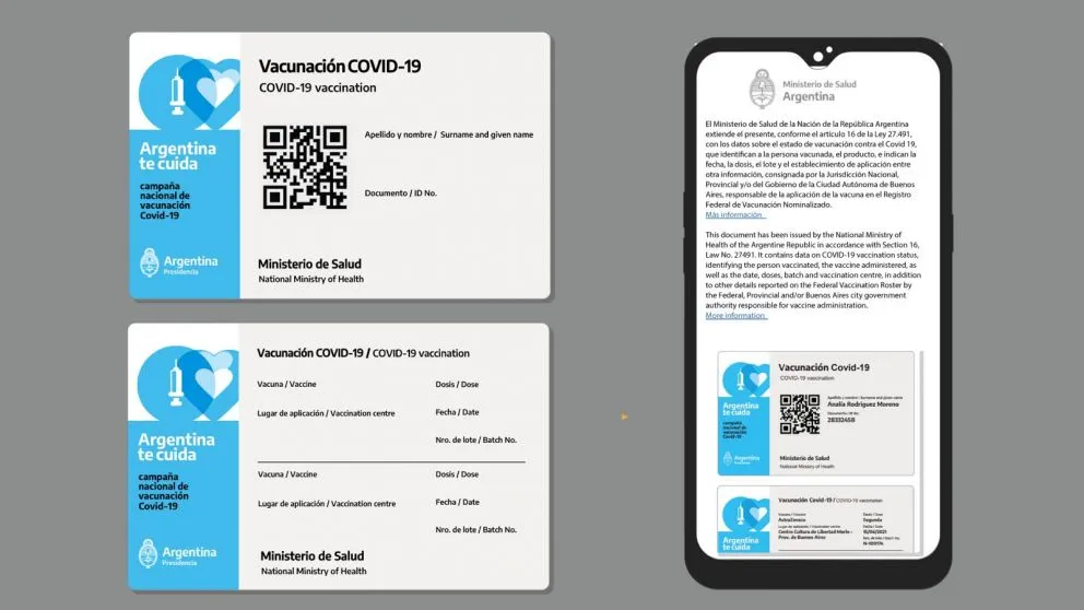 Además, ante la ausencia de un certificado global avalado por la OMS, la Cancillería argentina recomendó llevar la libreta física entregada por las autoridades al momento de vacunarse: "Ante la variabilidad de exigencias de los países para viajes internacionales, y considerando que la Organización Mundial de la Salud (OMS) aún no se pronunció sobre una certificación de alcance global, se recomienda a las personas que viajen al exterior conservar la documentación física entregada por las autoridades de salud al momento de recibir las dosis de vacunas para poder complementar y/o acreditar su vacunación contra el SARS-COV2 si les fuera solicitado".