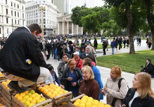 La protesta en Plaza de Mayo ya tuvo antecedentes en el 2016, cuando productores regalaron fruta a los numerosos vecinos que se acercaron al lugar.