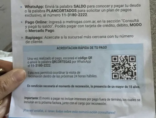 En los últimos días, usuarios de MetroGas alertaron sobre una nueva modalidad de estafa que circula en distintos puntos del país. Se trata de falsos avisos de corte de servicio que incluyen un código QR y buscan engañar a los clientes para obtener sus datos personales y bancarios.