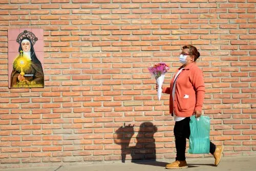 En el cementerio de Chacarita algunos visitantes ingresaban con sus vehículos y otros caminando, y formaban filas en la entrada de la calle Jorge Newbery con sus ramos de flores en la mano a la espera de que el personal a cargo de la seguridad les tomara la temperatura y les diera sanitizante para las manos.