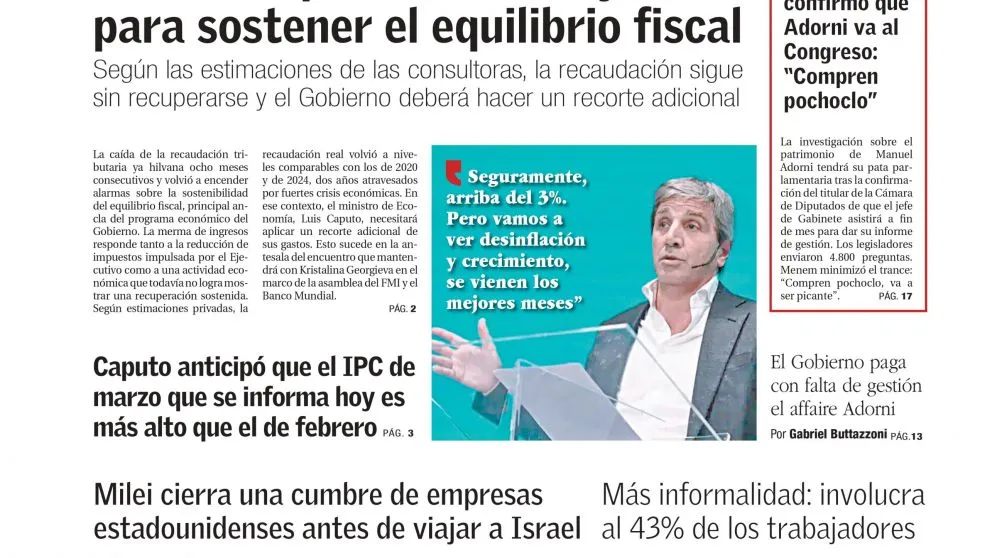 Este martes a las 16 el Indec publicará el IPC Nacional de marzo. Si se confirma la proyección de Caputo, se cumplirán 10 meses sin desinflación y el ministro aseguró que habrá desaceleración desde abril